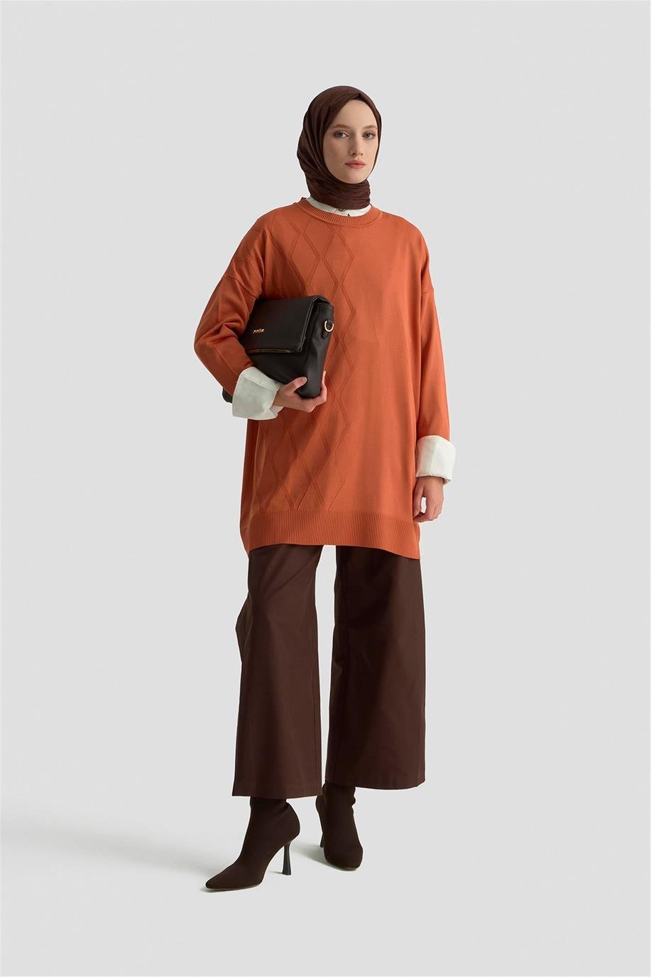 Armine TREND Baklava Desen Detaylı Triko Tunik Şeftali 25YTD4118