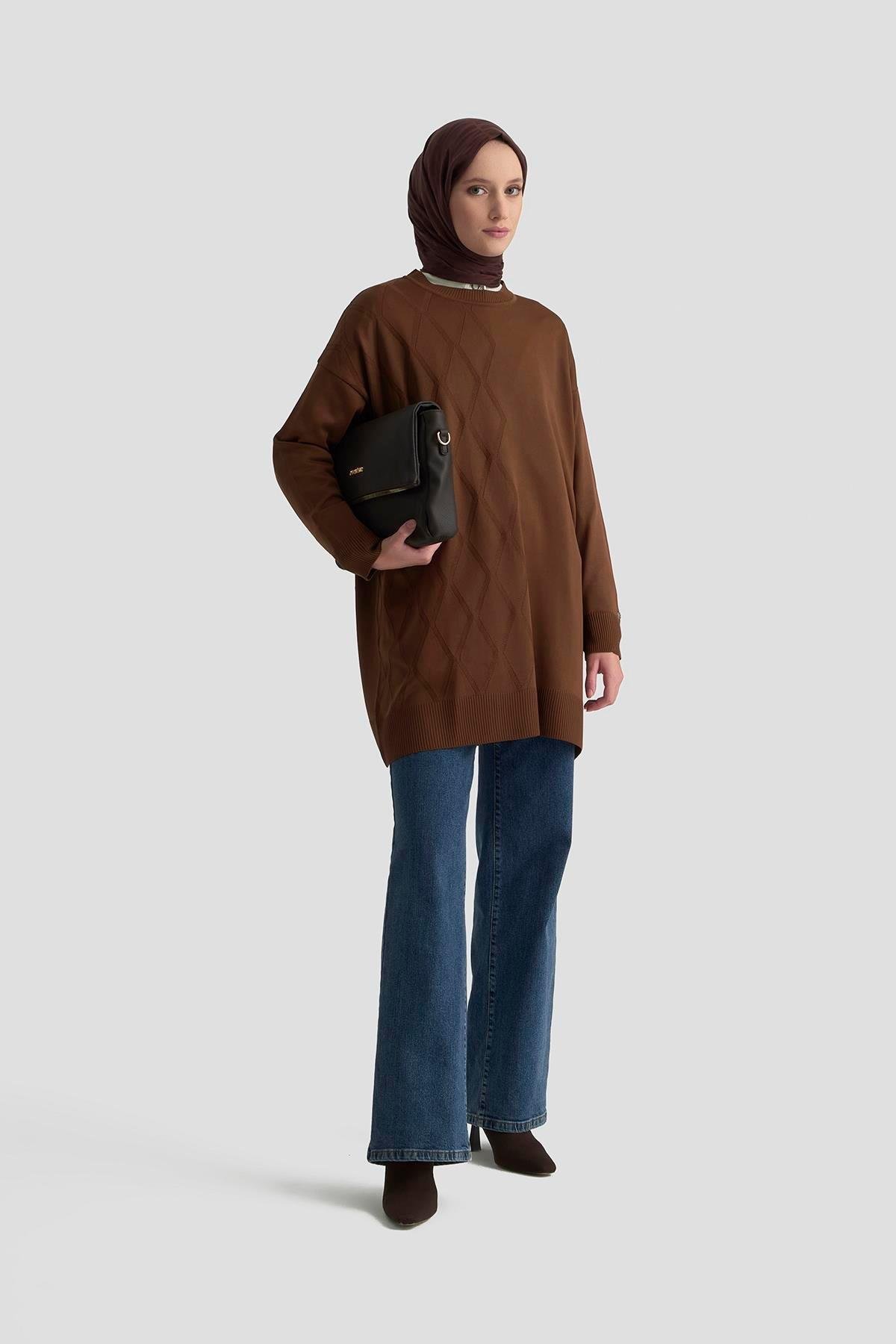 Armine TREND Baklava Desen Detaylı Triko Tunik Tobacco 25YTD4118