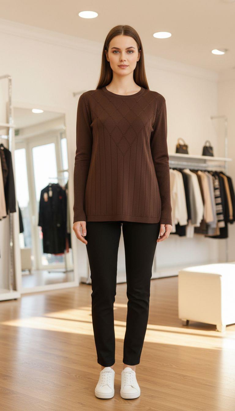 Armine TREND Baklava Desenli Triko Kazak Kahverengi 25YTD4130