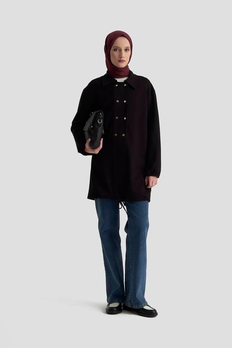 Armine TREND Çift Düğme Detay 2 İplik Tunik Siyah 25KT422