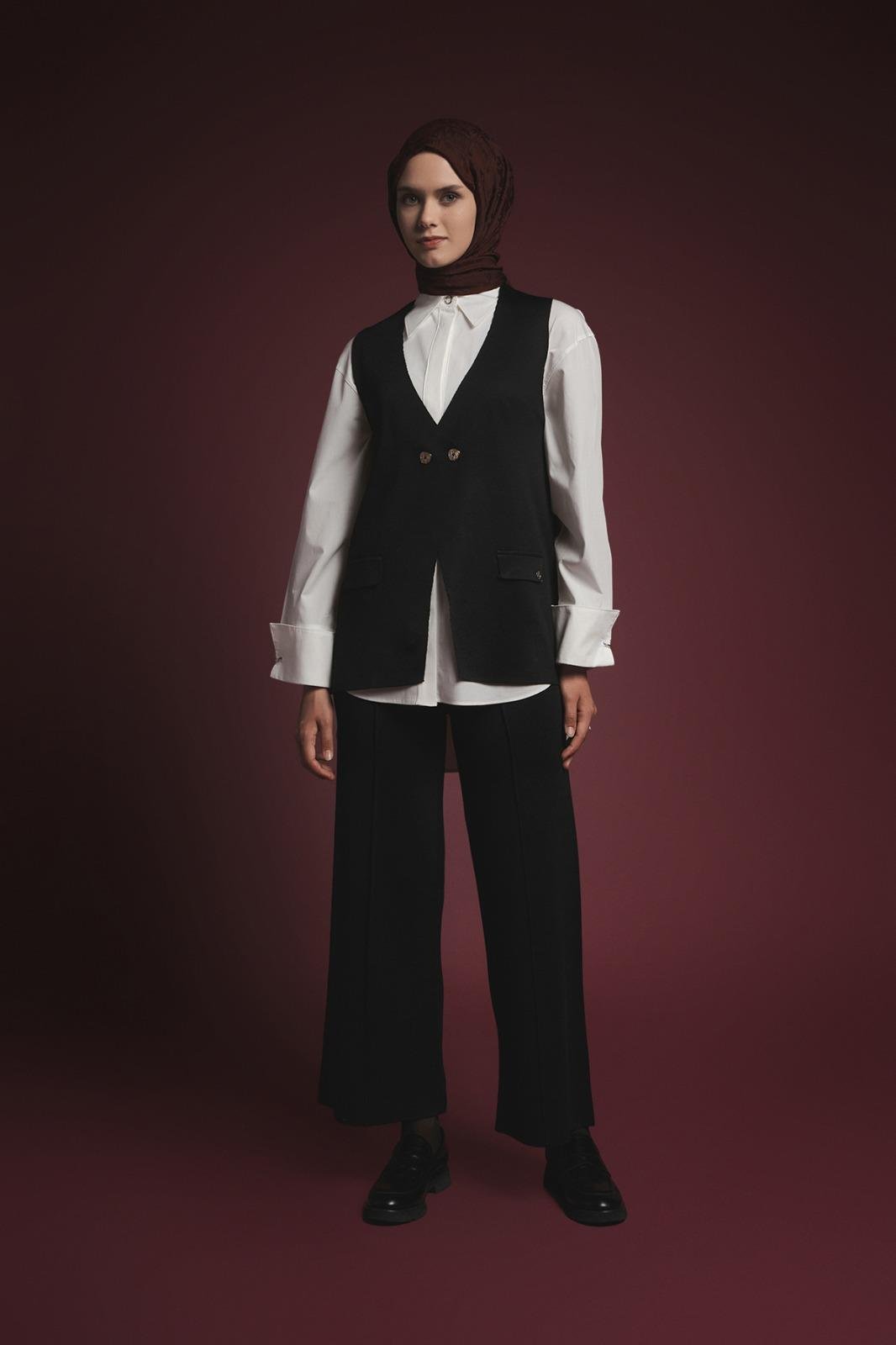 Armine TREND Çift Düğme Detaylı Yelekli Triko Takım Siyah 25YTD6117