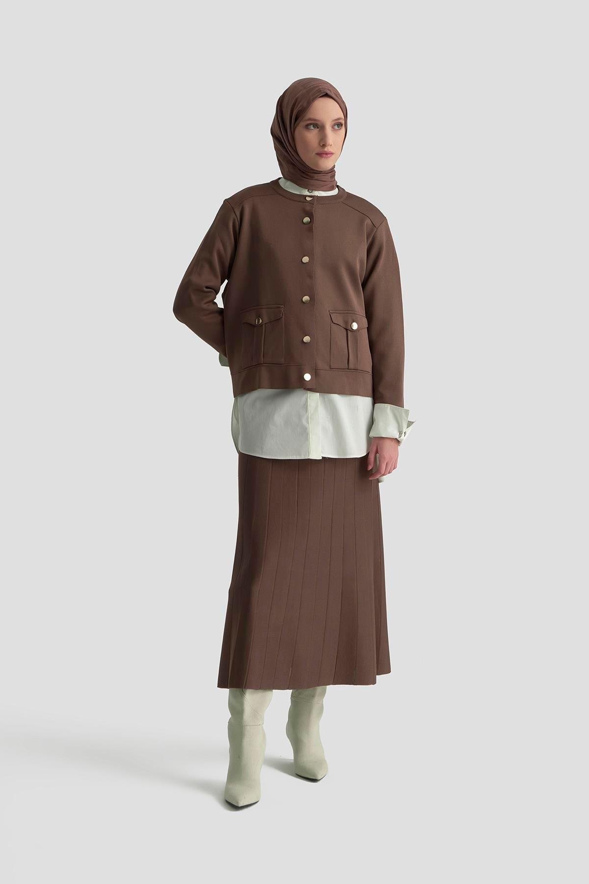 Armine TREND Düğmeli Etekli Merserize Takım Mocha 25YTD6120