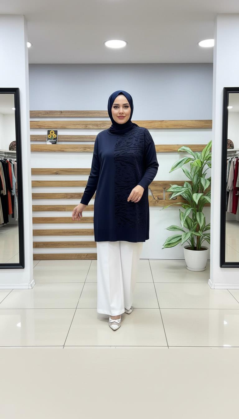 Armine TREND Sim Detaylı Zebra Desen Triko Tunik Lacivert 25YTD4116