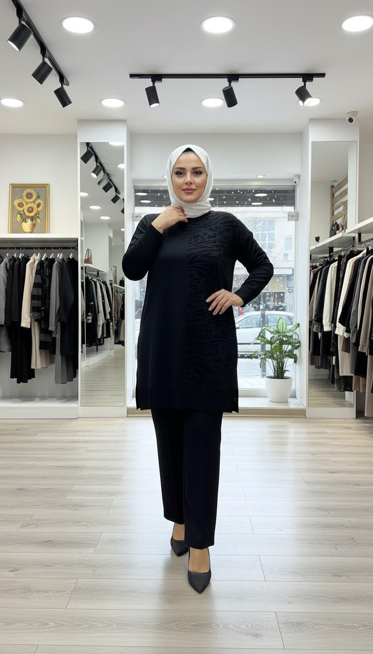 Armine TREND Sim Detaylı Zebra Desen Triko Tunik Siyah 25KTD4116