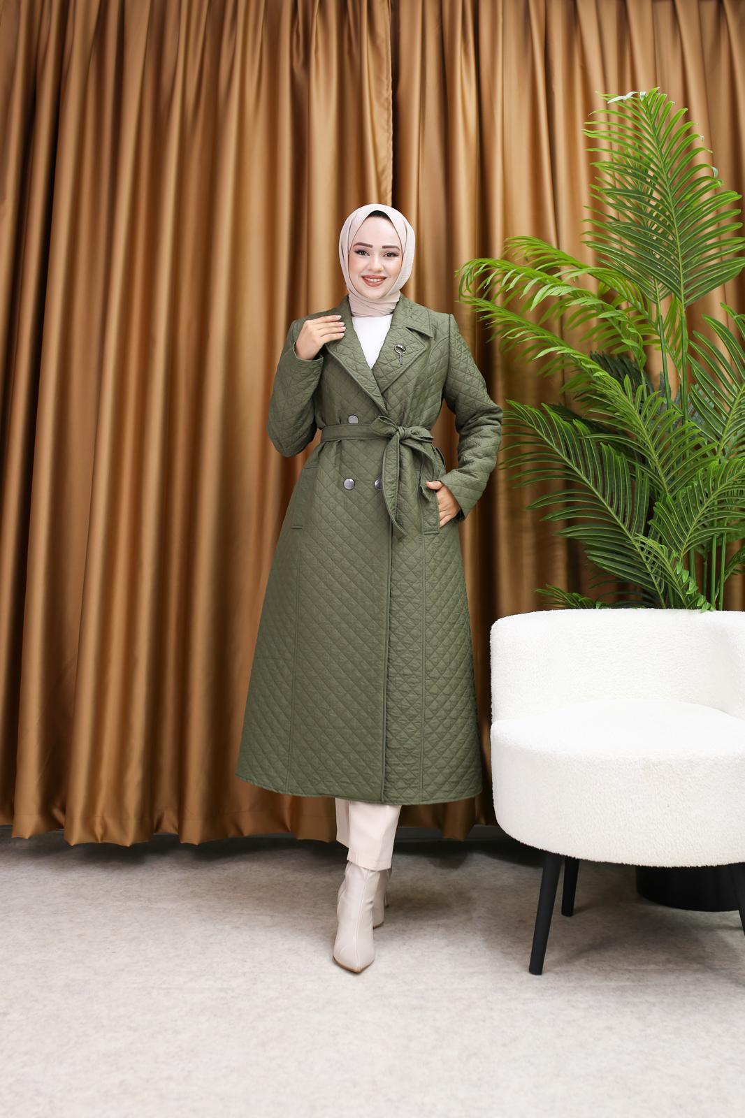 Kapitone Astarlı ve Bağıcıklı Bayan Kap Giy-Çık Haki