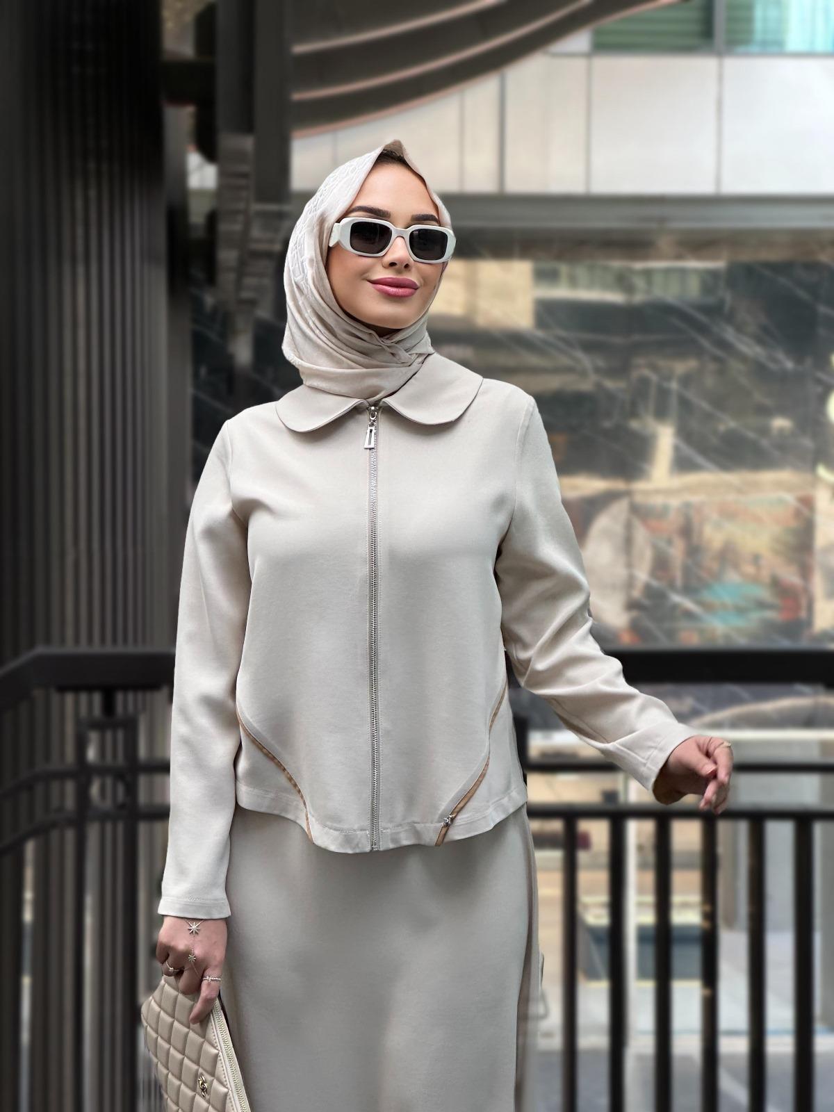 Nihle Ceket ve Etekli Spor Bayan Takım Bej